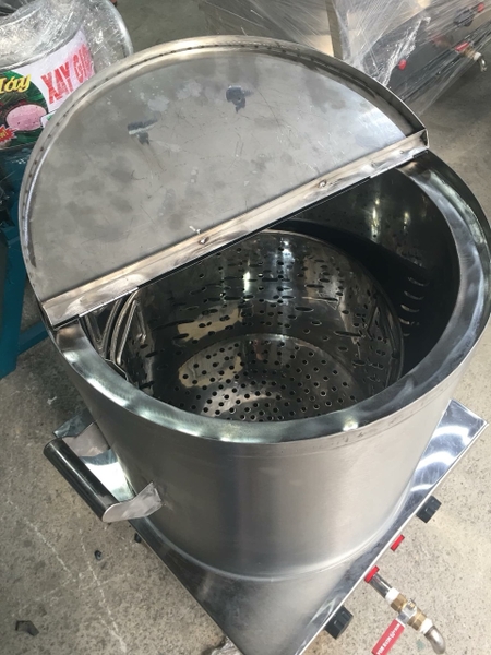 Nồi chạy động cơ 4kW, đường kính 46cm, chiều cao 40cm, nồi nặng 16kg. Kích thước toàn bộ 58cm – 50cm- 75cm