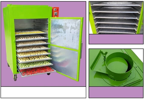Máy còn được thiết kế bảng điều khiển thông minh gồm đồng hồ hẹn giờ, đồng hồ báo nhiệt, công tắc tắt mở và đèn báo hoạt động. Giúp người sử dụng dễ dàng theo dõi và điều chỉnh nhiệt cho phù hợp với nguyên liệu sấy. Bên trong tủ được thiết kế 10 khay sấy to rộng, có thể chứa đựng được từ 8 – 12 kg/khay. Bên ngoài xung quanh thành máy, được phủ 1 lớp bông thủy tinh dày dặn, có chức năng giữ và cách nhiệt với môi trường bên ngoài.